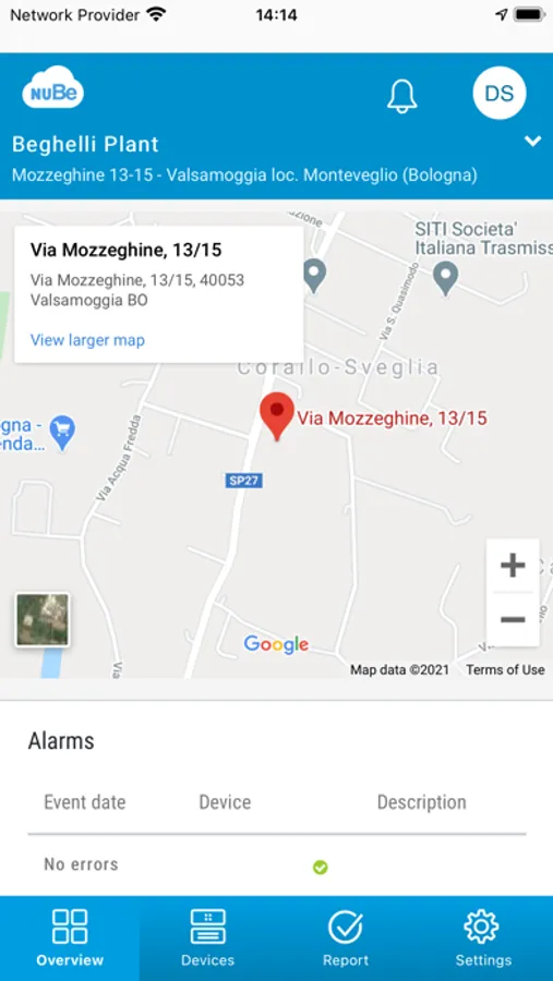 It allows direct access to NUBe cloud platform, to the control unit or to the single device.
