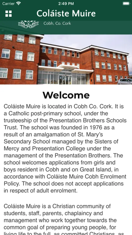 Mobile App for Coláiste Muire secondary school, Cobh Co. Cork.