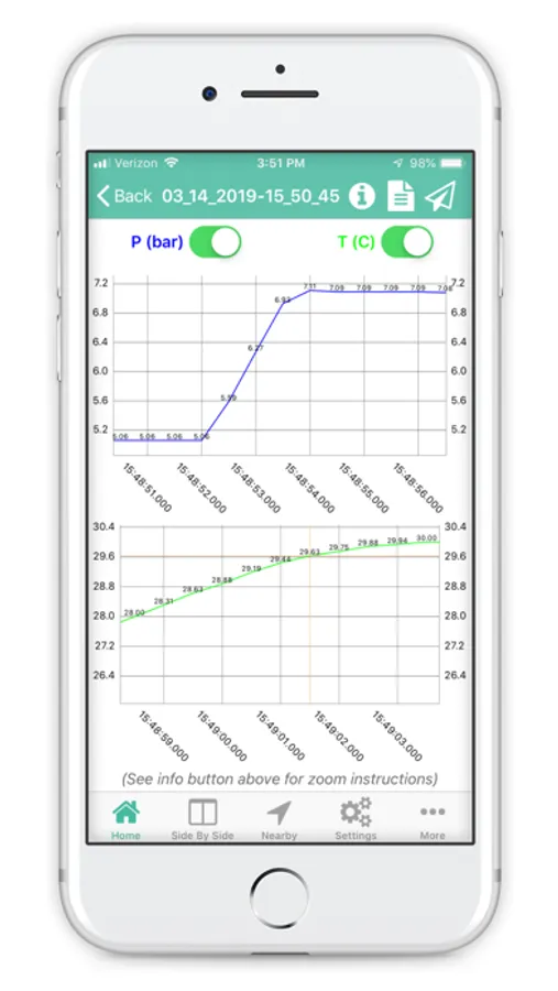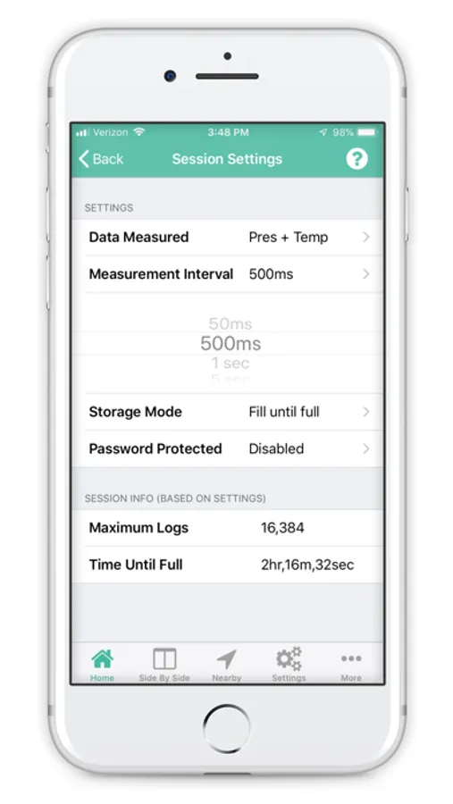 SPT Blue allows you to set up data logging sessions on the sensor -- simply connect, configure + start your session, and walk away. Come back at a later time to retrieve the data that was recorded on the sensor. Also monitor live readings from the sensor, set alarms, and do much more.