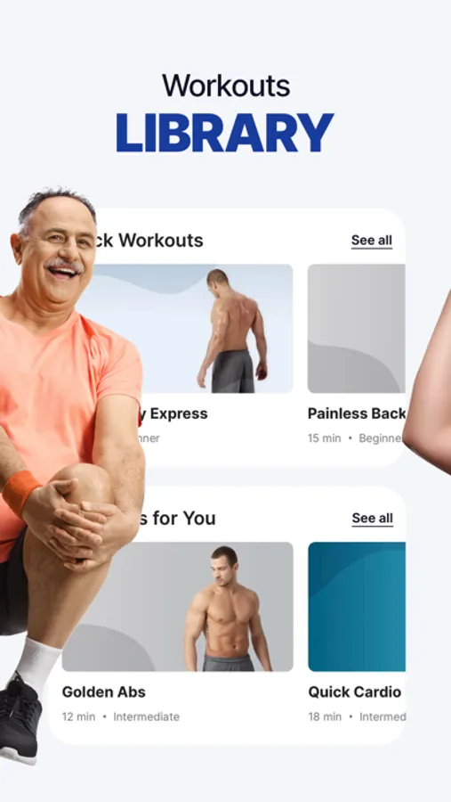 - Workout routines, suitable for all ages (18+) and fitness levels, created by professional coaches