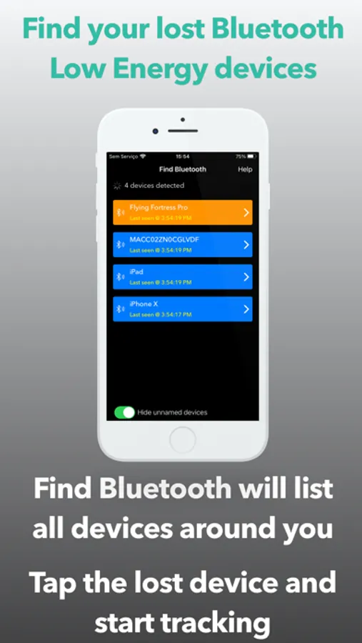 IMPORTANT: This app can find any Bluetooth Low Energy (aka Smart) device that is turned on and actively advertising.