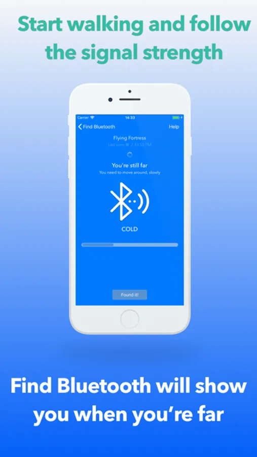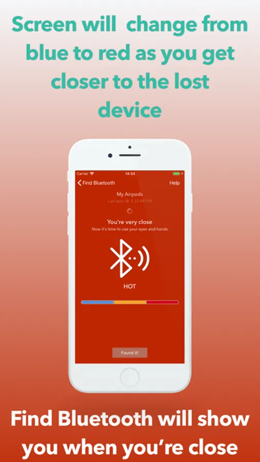 - Ease of use. Find Bluetooth shows all devices around you. Tap the one you are looking for to bring it to focus and happy hunting!