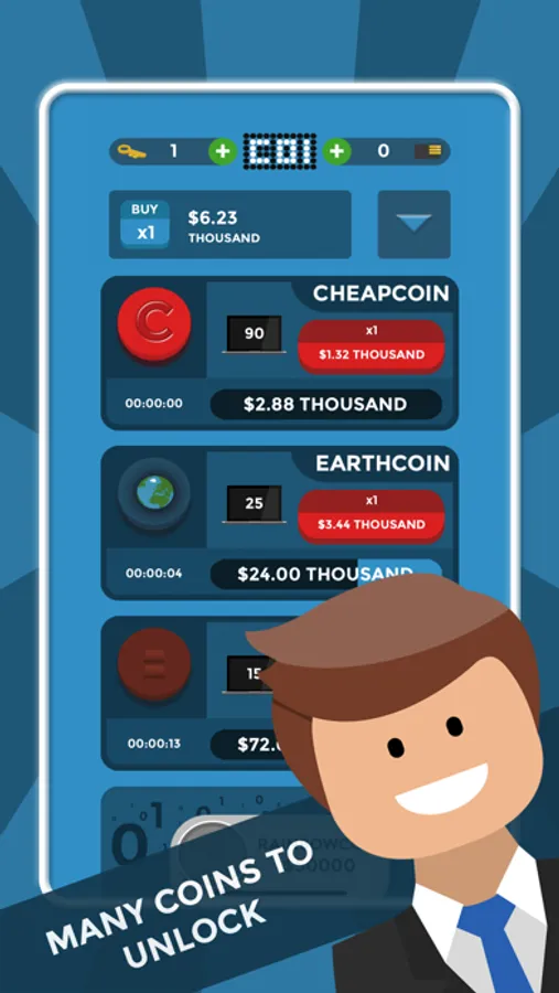 Start by tapping the cheapest coin, Cheapcoin, and once you've accumulated enough cash, upgrade and your profits will be significantly increased for every tap. Bots will automatically tap for you while you're away. You'll be able to afford new coins in a matter of no time.
