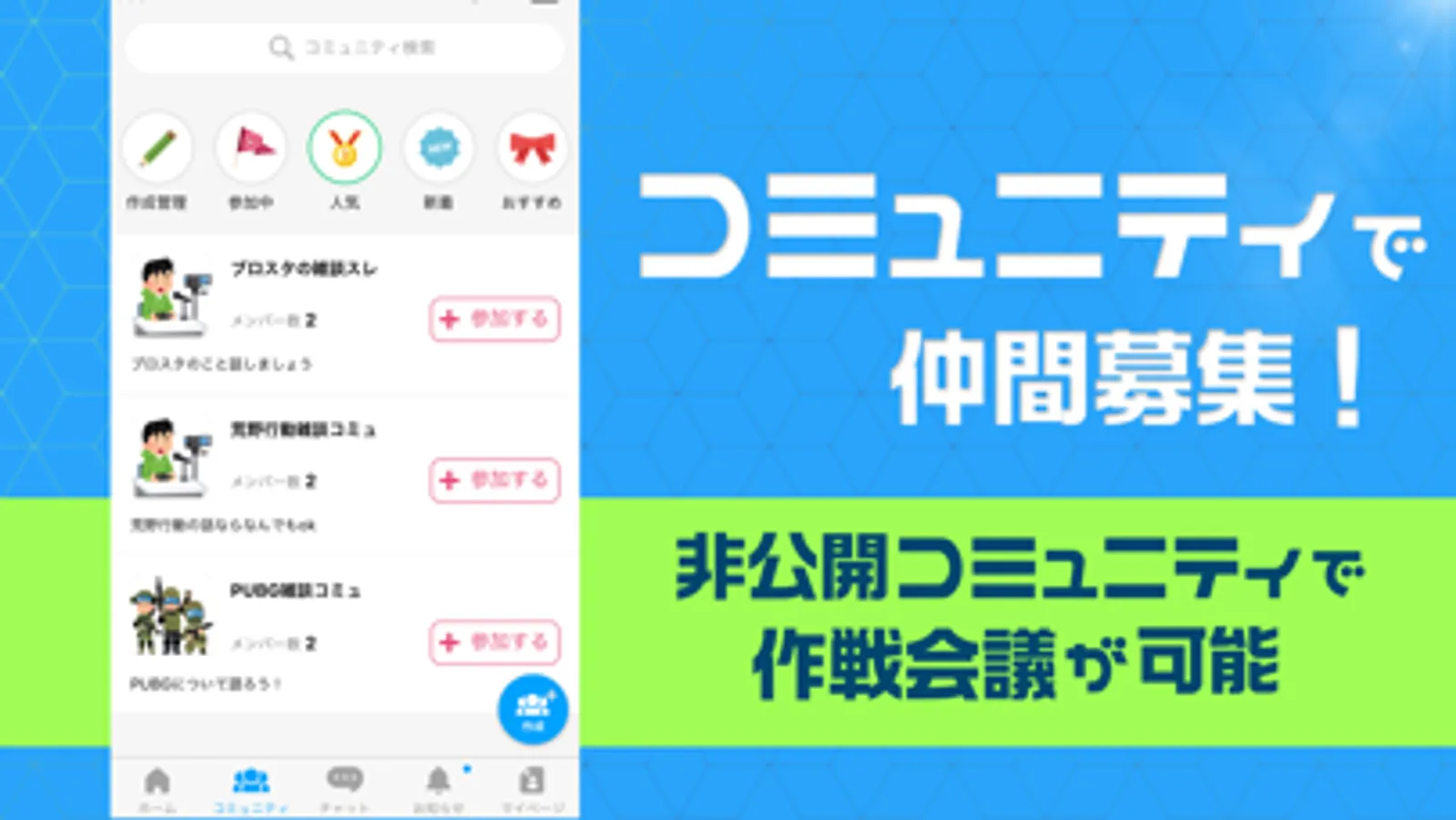 ・コミュニティが作成できる。