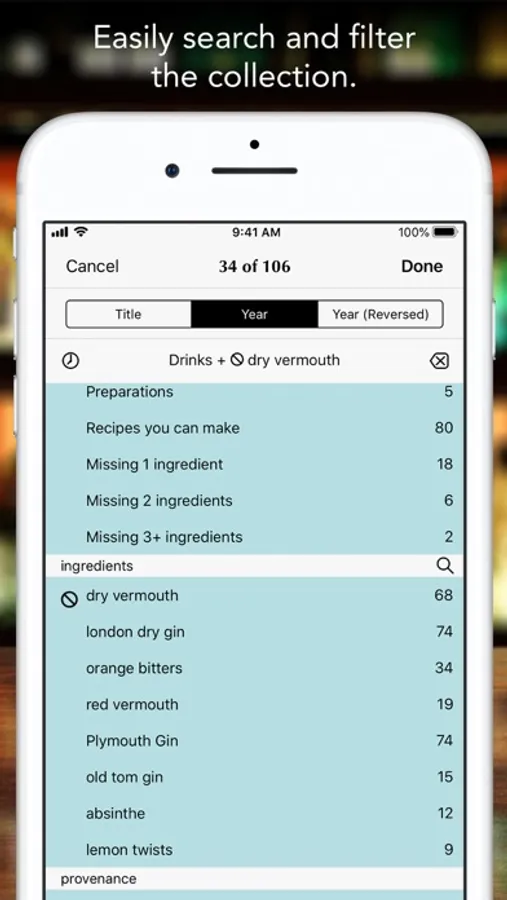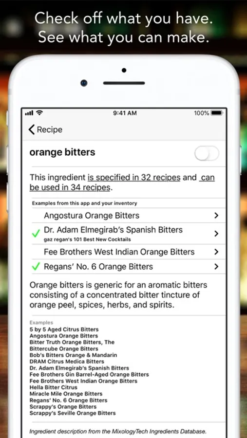 - Check off the ingredients you’ve got and this app will show you which drinks you can make!