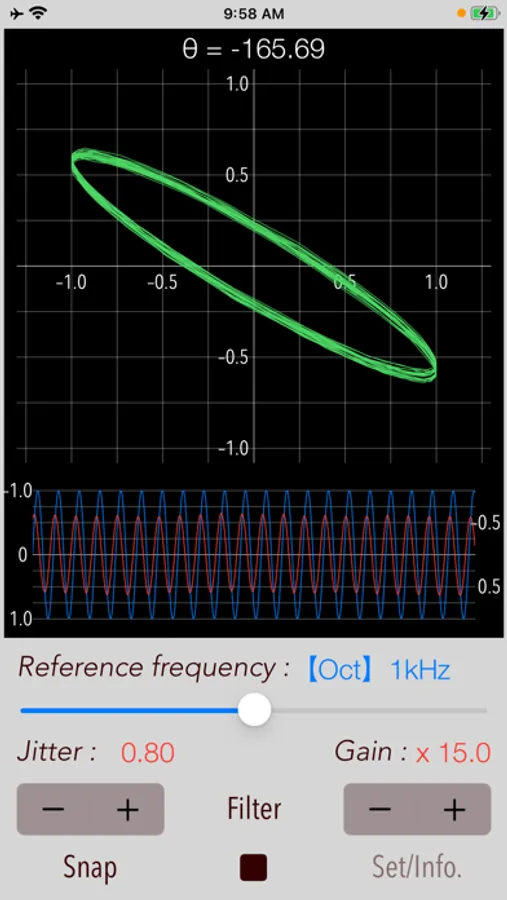 It can be displayed in a two-dimensional curve by Lissajous in the vertical axis as a microphone input signal and the horizontal axis as a reference sine wave.