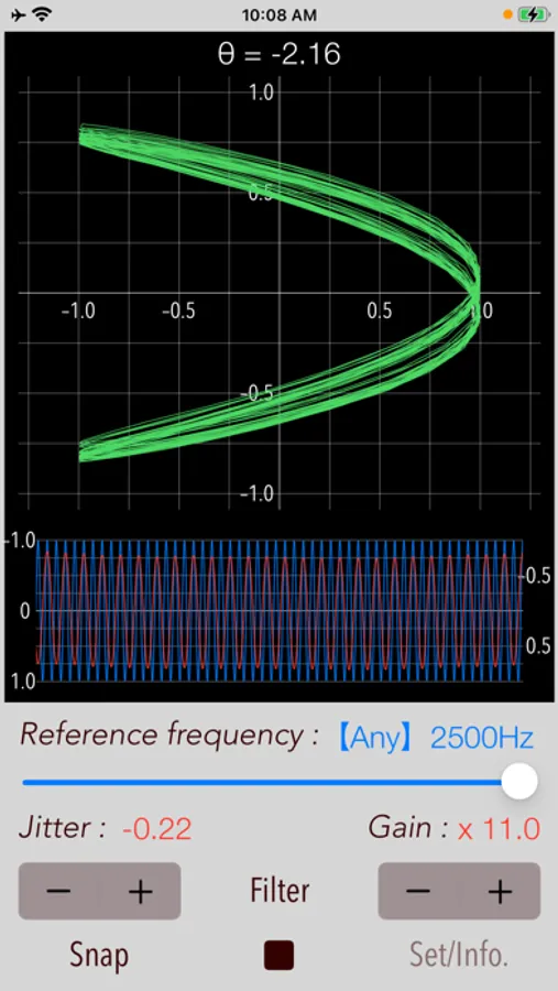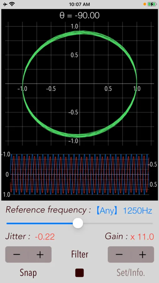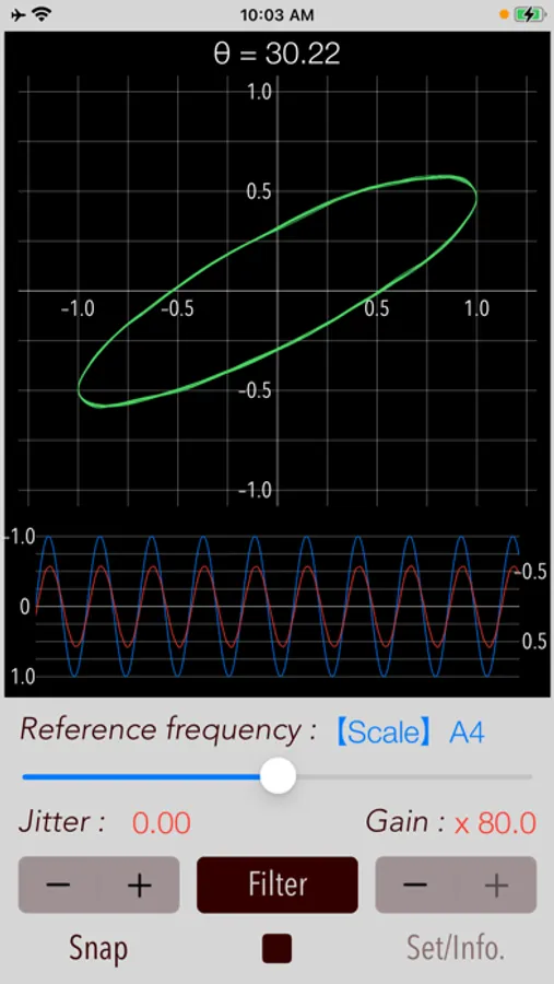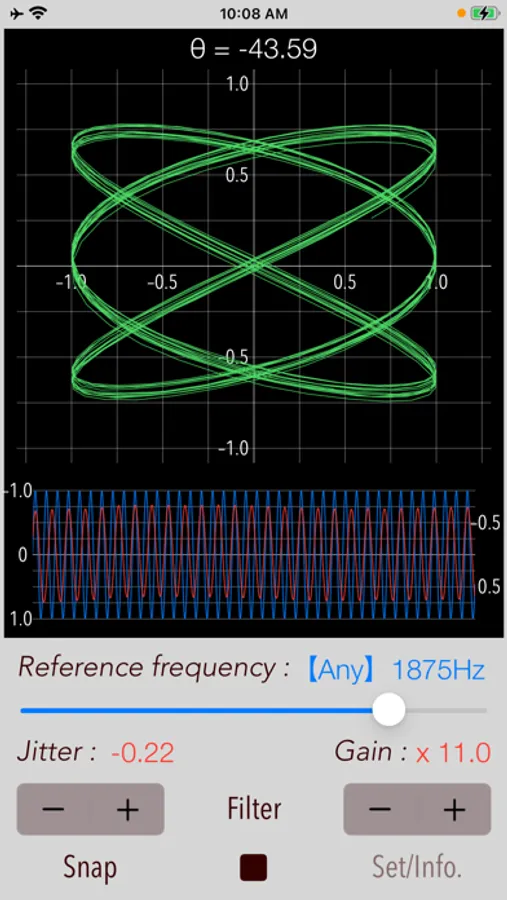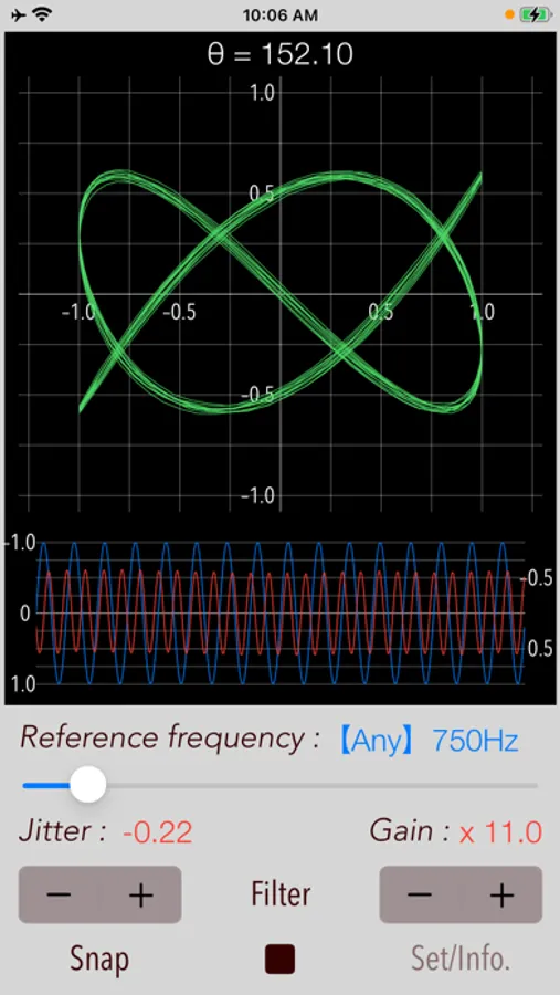 - The jitter adjustment can reduce the rotation of the phase angle when Lissajous curve's phase changes sequentially at the same observation position. But the correction may not be possible if the phase change is severe.