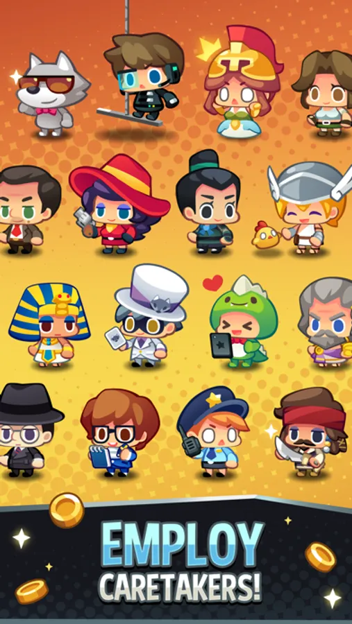 - Collect Them All: Make billions and hire high profile and unique characters to keep your museum safe! From celebrities and fictional characters to famous artists! (And make them do your bidding!)