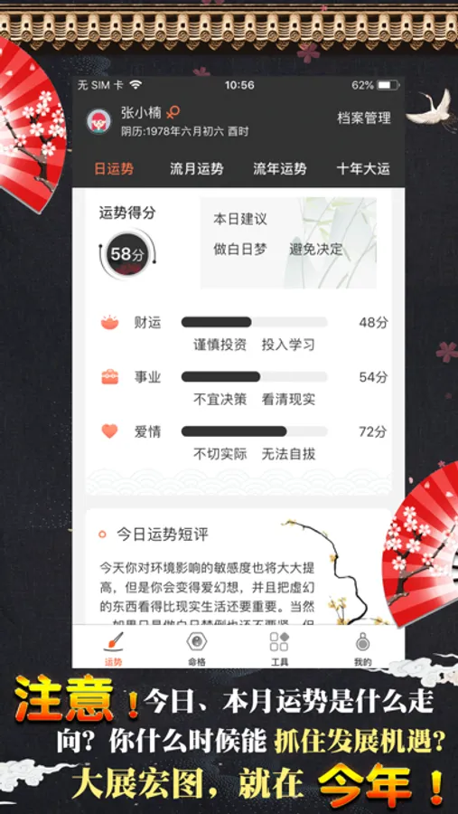 4、开运工具:提供建议性可提升您运气的工具,针对不同情况提供不同的建议。
