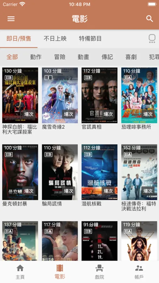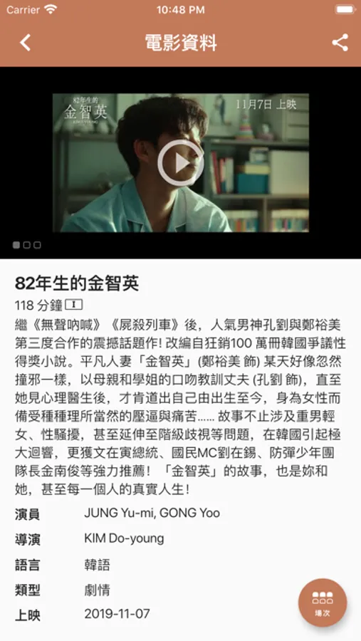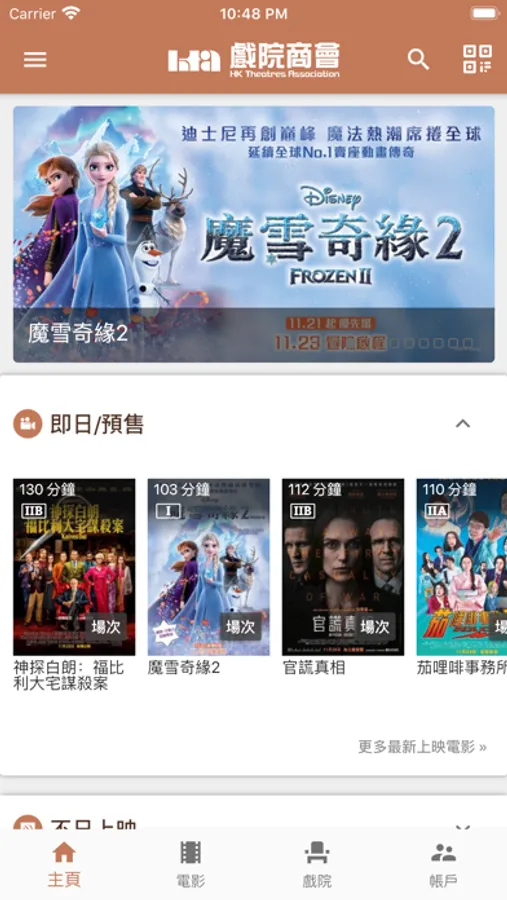 - Function like search by nearby theatres/by 18 districts, or preset the favorite theatre through the personal setting, then the favorite theatre will priority display when searching a theatre;