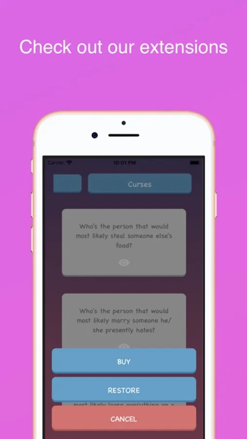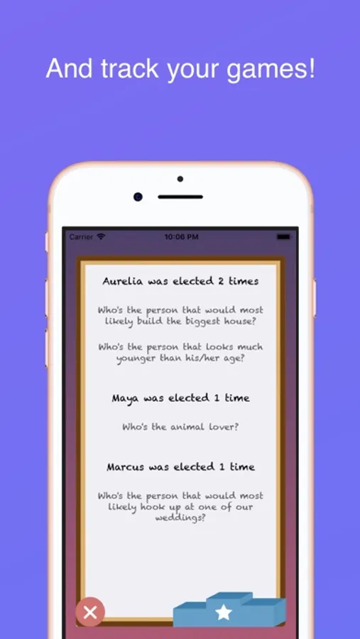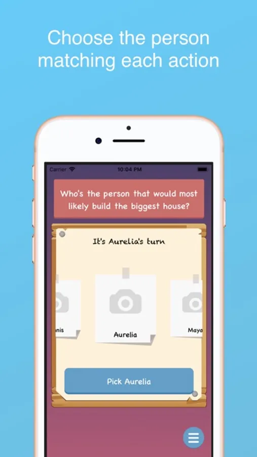 During a round, an action card is drawn randomly from a pool and each player (in a randomly order) will have to choose the person who matches the description the most.