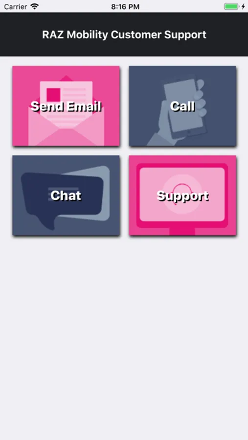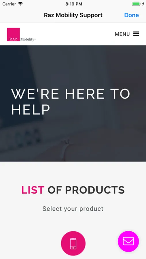 RAZ Mobility Support app helps you quickly find support information.