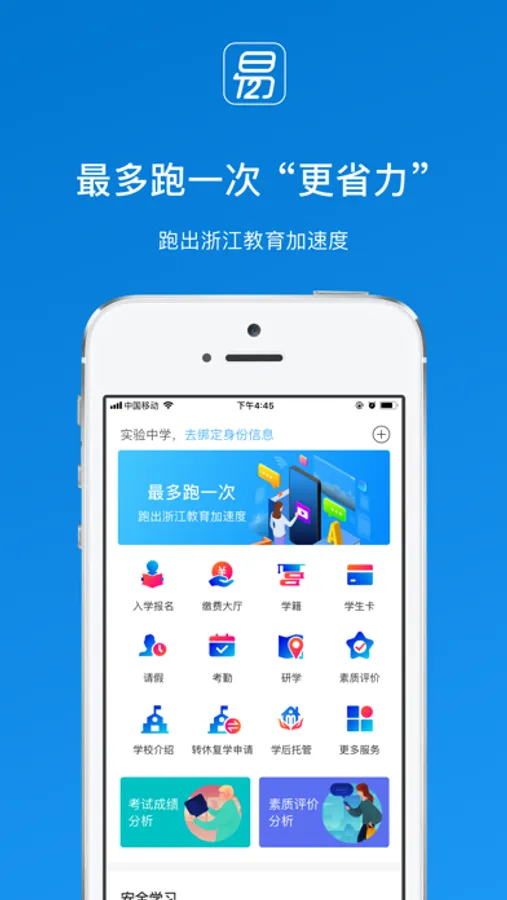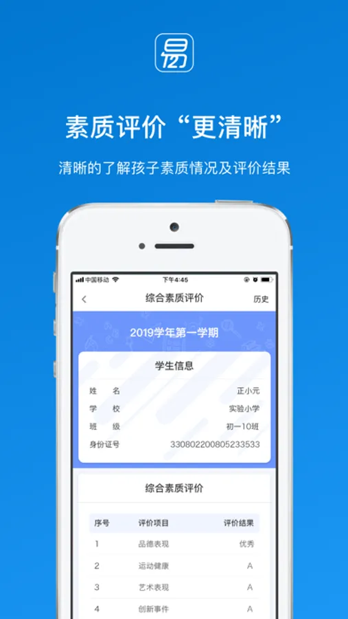 易12APP是为中小学生、幼儿园提供学籍服务、教务服务、家校互通服务、成绩分析、综合素质评价等服务,让孩子在校生活变得更透明,家校沟通更有效。