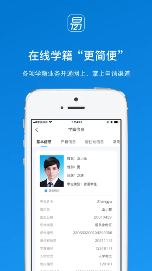 转、休、复学预登记功能——在线进行转学、休学、复学等预登记,并根据业务提供相应的佐证资料,由学校和当地教育行政主管部门在线办理。