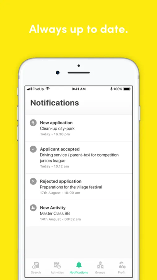 DON'T MISS A THING. Push notifications keep you informed about applications or rejections for your activities.
