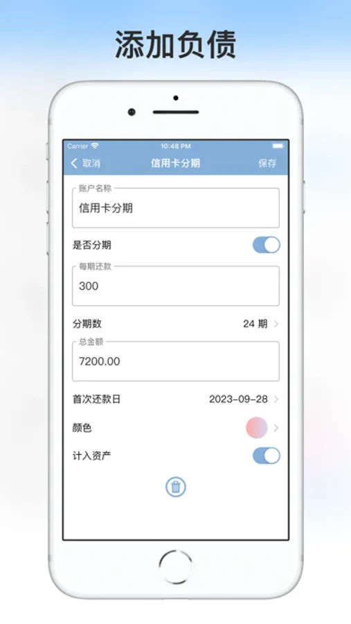 记录资产、负债与分期贷款,根据分期记录生成还款计划的记账软件~