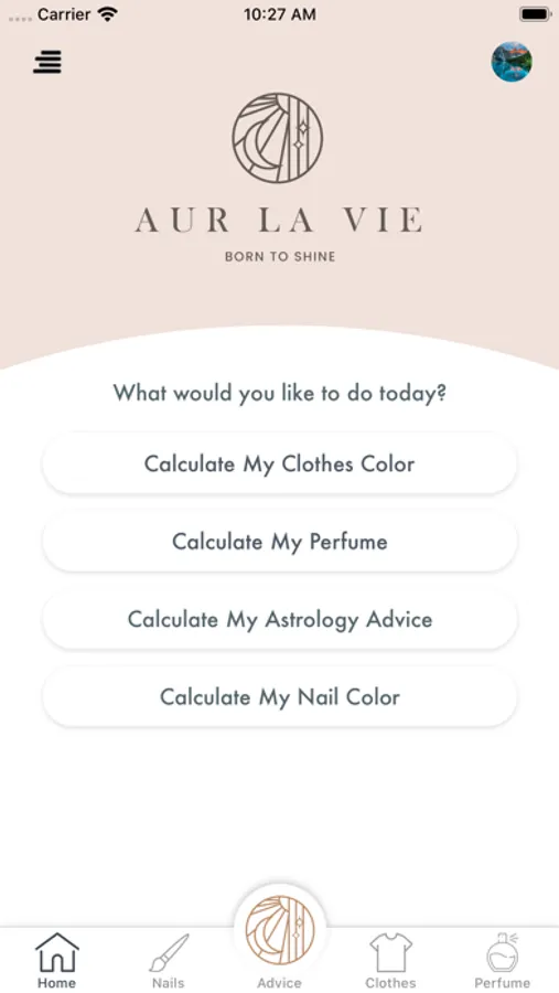 Aur la Vie’s Astrology algorithm calculates how each natural element will connect with your mind and body on any given day and selects food, color, fragrance and other representations of the right element to enhance a chosen area of your own personality according to the outcome you desire.
