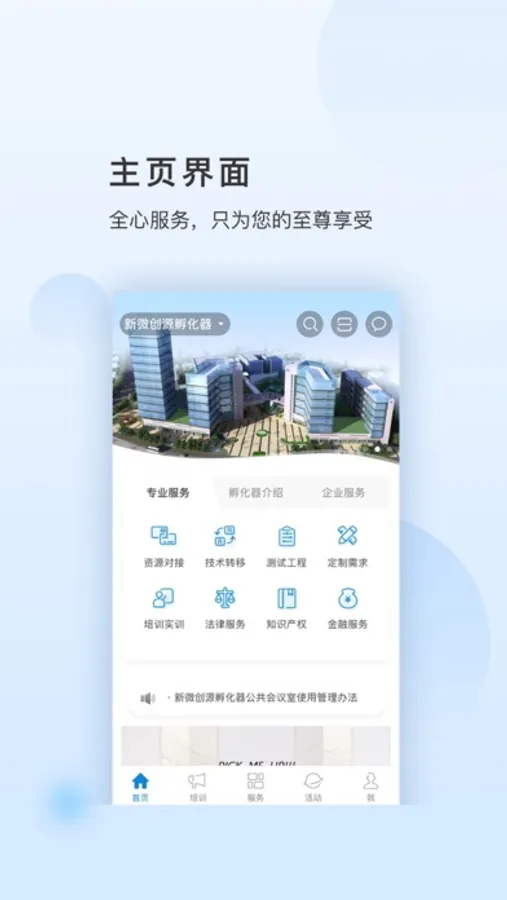 为您提供系统化的培训服务;优质资源对接、仪器共享服务;金融服务、法律服务……多样化的园区服务,应有尽有!