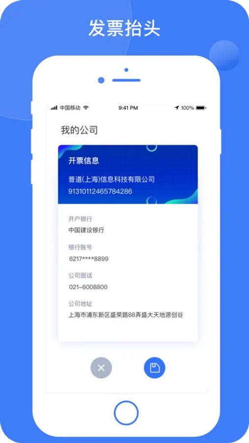 · 快速查看或保存公司抬头,使对方为你开票。