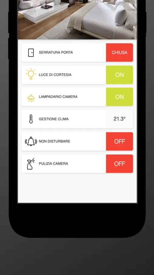 Se la struttura lo prevede, dalla app MyWAY puoi anche gestire le automazioni della tua camera, come ad esempio luci, tende motorizzate, oppure regolare la temperatura ottimale.
