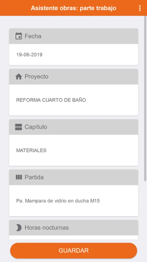 Versión estable de Aplicación conectada con gsBase al ERP de Obras y Reformas. Introducción de partes de operario en un obra clasificada por capítulos y partidas.