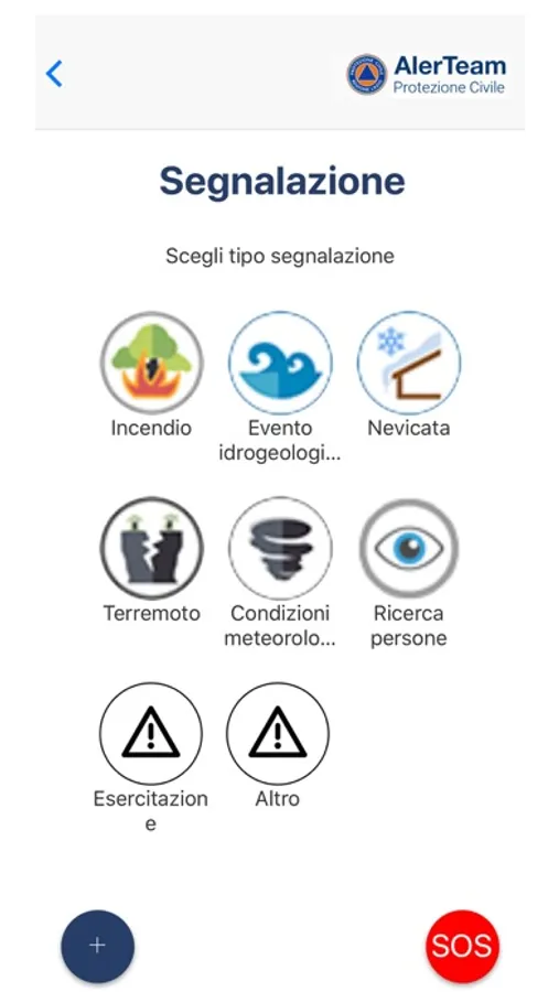 Gli utenti possono scegliere e trasmettere la tipologia di evento selezionando la relativa icona. La segnalazione è registrata sul sistema e la Sala Operativa Regionale la valuta, crea un nuovo evento e attiva le procedure di intervento.