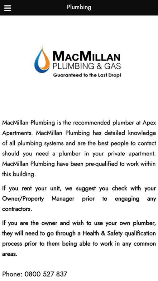 Contacting the Building Manager has now been made even simpler, as well as details of our preferred contractors with knowledge of the building.