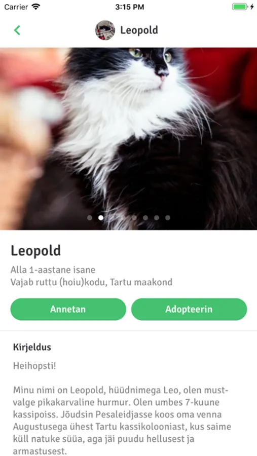 Kõik kassid, keda äpis näed on hetkel kodutud. Seega kui mõni nurrik võidab su südame, saad täita läbi äpi adopteerimise sooviavalduse ning Pesaleidja suhtleb Sinuga personaalselt edasi.