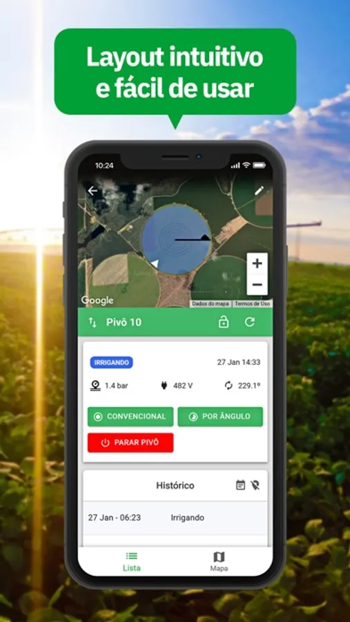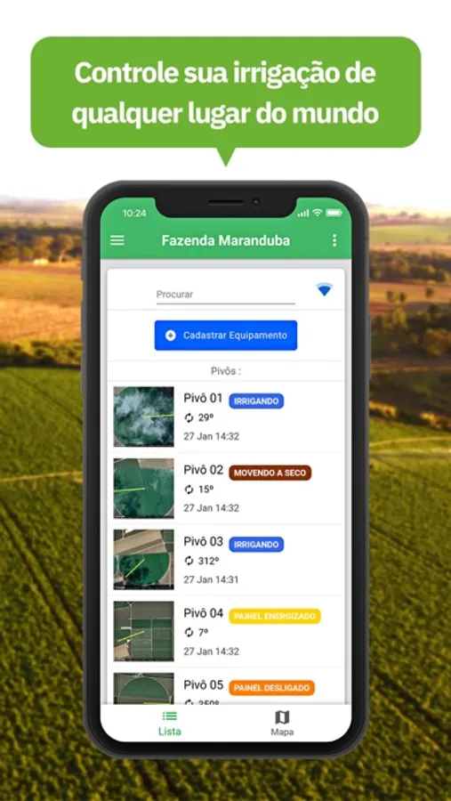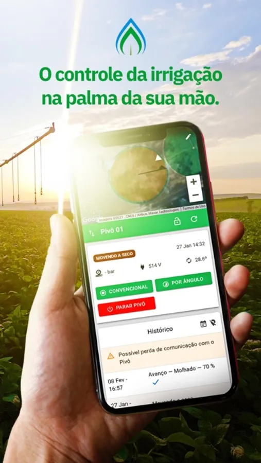 Controle e monitore seus sistemas de irrigação à distância em qualquer parte do mundo, usando este aplicativo ou através da Central Irricontrol.