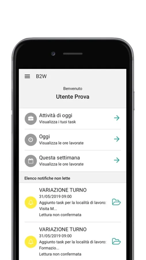 - App Utente: pensata per essere lo strumento di raccolta dati dal dipendente finale. Facile e veloce per avere sempre il quadro della situazione sotto controllo.