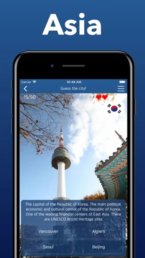 This is a great educational game for anyone interested in geography. Guess the cities of the world! Test your knowledge!
