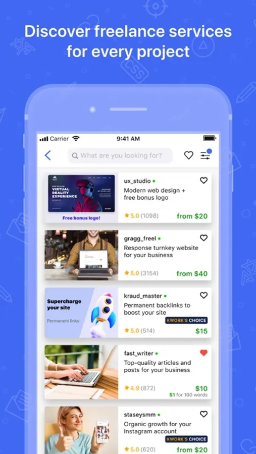 Search, filter, and choose from 500,000+ freelance services in the Kwork Catalog: