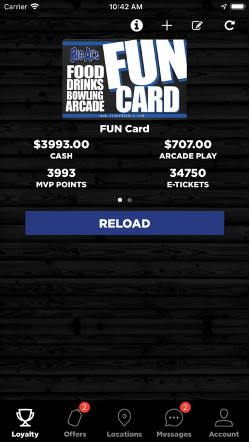 • See your Big Al’s FUN Cards cash and ticket balances as well as your MVP status
