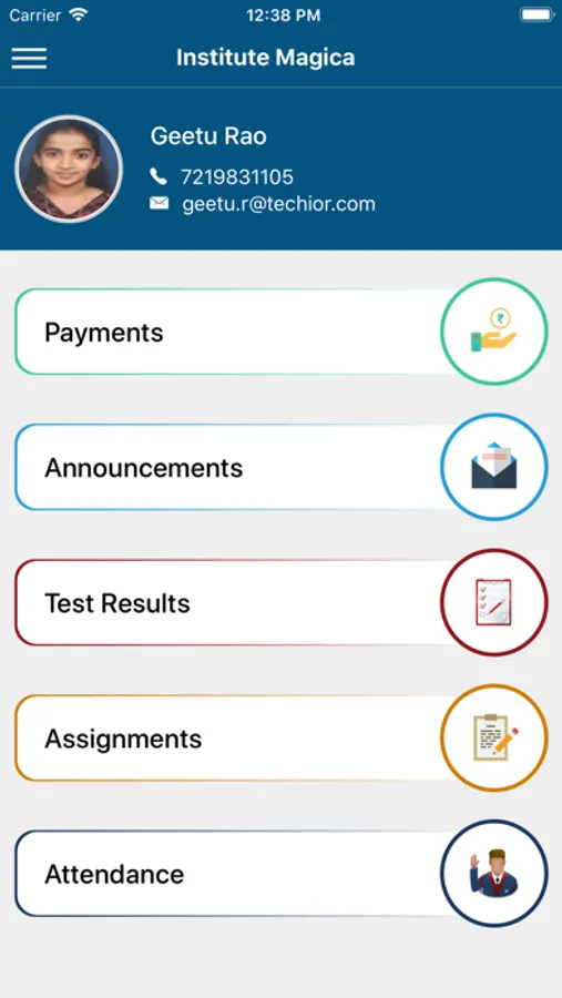 Also parents can see the messages sent by Institute Magica on their app. Moreover, parents can use their credit/debit cards to make online payment for fees. They can also make payment using NEFT.