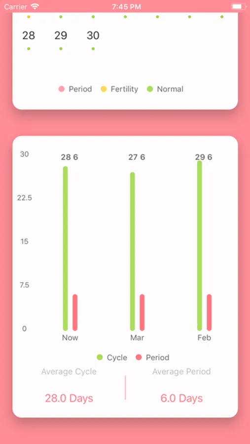 ● Displaying the history of the menstrual cycle in the form of a histogram, see the body changes information at a glance.