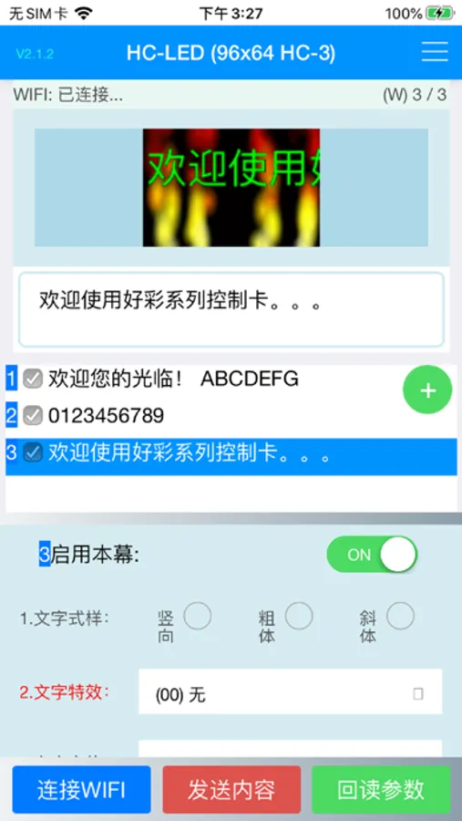 本APP为新翼好彩(HC)系列控制卡配套软件。支持HC-1卡(动画级别灰度全彩), HC-3卡(视频级高灰度全彩),XY-3卡(视频级高灰度单色)。