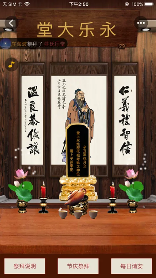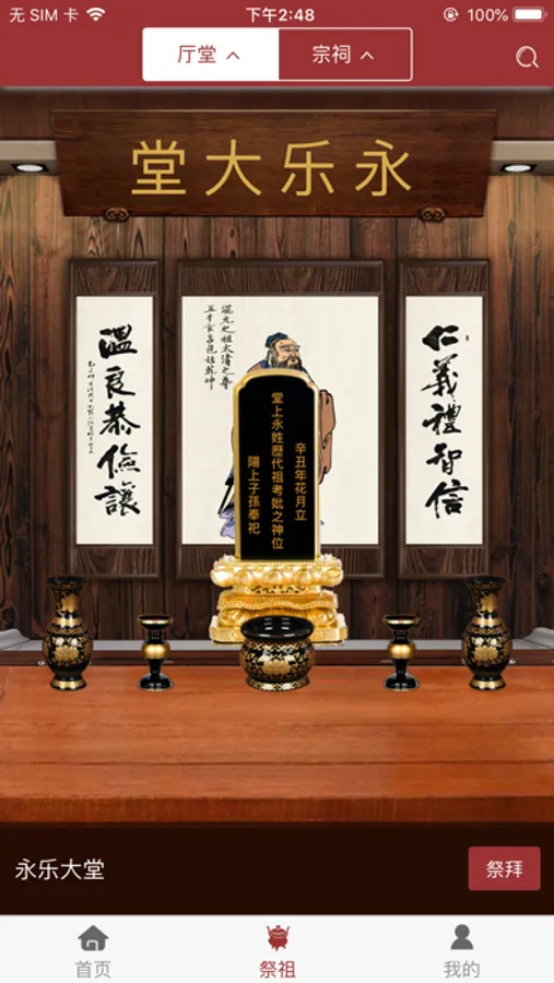 ■祖先供奉 可在线创建个人厅堂和家族宗祠,供奉祖先神位,在线祭拜祖宗先辈、亲友师长。
