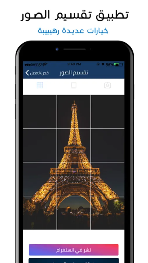 تطبيق يقوم بتقسيم اي صورة كبيرة الى عدة صور بشكل متناسق وجميل لتستخدمها على حسابك في انستقرام وتجعل صفحتك أجمل وأكثر تميزا، بامكانك مشاهدة بعض النماذج وكيف ان هذا التطبيق سيرفع من التفاعل على صفحتك على انستاقرام. كمان يوجد الكثير من الخلفيات والصور عالية الوضوح التي يمكنك تحميلها مجانا.