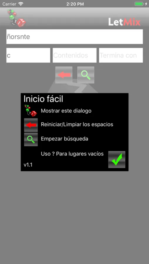 Simplemente ingresa los caracteres que poseas y presiona el icono de búsqueda. En instantes, LetMix encontrará todas las palabras validas que pueden ser combinadas con los caracteres ingresados.