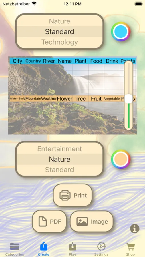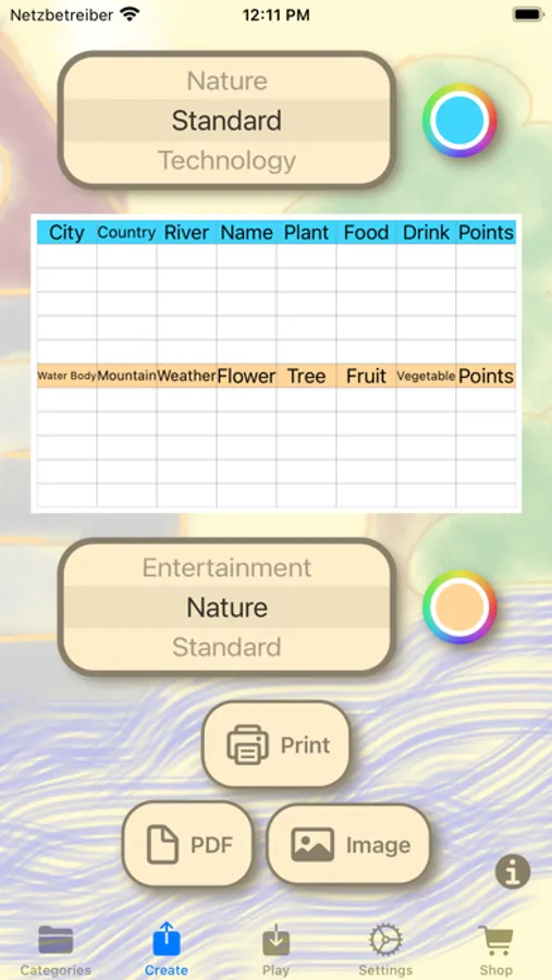 SLF-Words2Find contains some given categories, but for creative minds it also contains a data file to individually develop own game categories. This way the playing sheets can be individually created with the desired game categories and printed via AirPrint® printer.