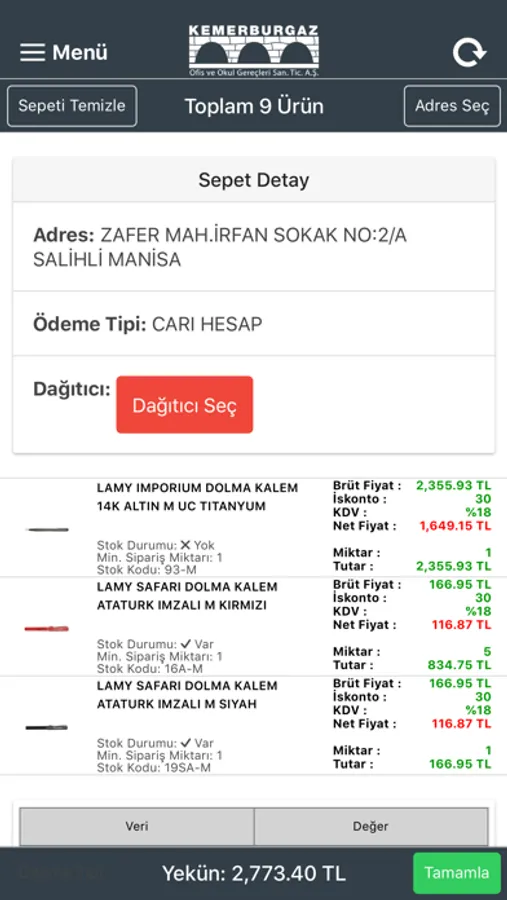 Kemerburgaz B2B Sisteminin Mobil Uygulaması.
