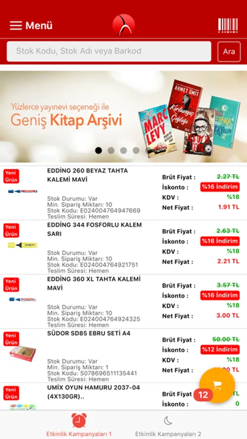 - Cihaz Kamerası ile Barkodu Taratarak Ürün Arama