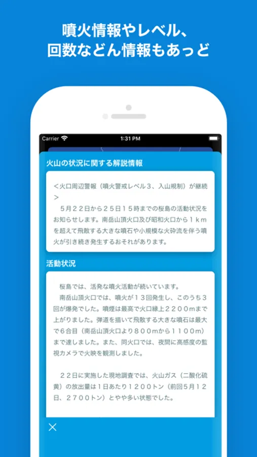 このアプリは、桜島の噴火や爆発によってどの方向に灰が降るのかを通知するアプリです。
