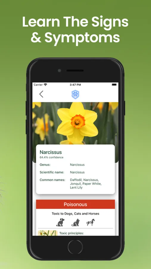 We have collected an extensive list of poisonous plant species and developed a cutting edge app that can detect these plants through use of your device’s camera. Simply snap a picture of a plant and the app will determine if the plant is poisonous. If the plant is poisonous it will display information about the plant as well as toxic principles and symptoms to be aware of in your pets.