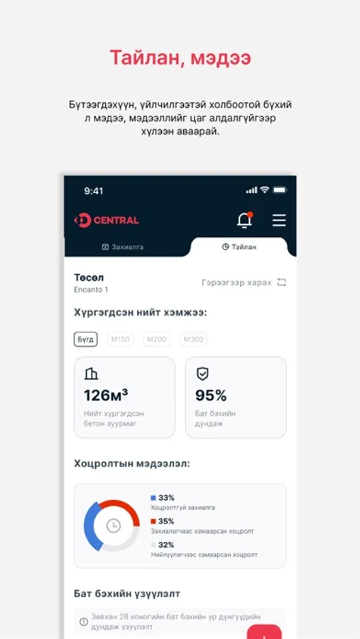 Central платформыг ашигласнаар захиалга, хүргэлтүүдийн явцын мэдээллийг бодит цагийн горимд хүлээн авах боломжтой. Мөн төслийн талбай, оффис, бэлтгэн нийлүүлэгчдэд тулгардаг хүндрэлүүдийг шийдэж ажлын уялдааг шинэ түвшинд гаргах зорилготойгоор сайжруулсаар байна.