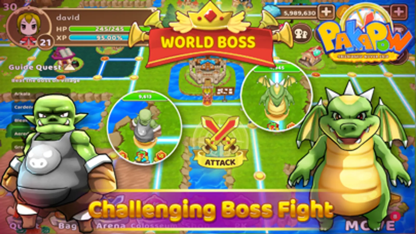 PaKaPow is an adventure board game that players walk by rolling the compass. Then you can choose the spot to stop. Every spot has its own special event. You will have fun exploring the Pakapow Kingdom and grow your hero to be the top hero in this world.