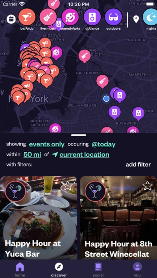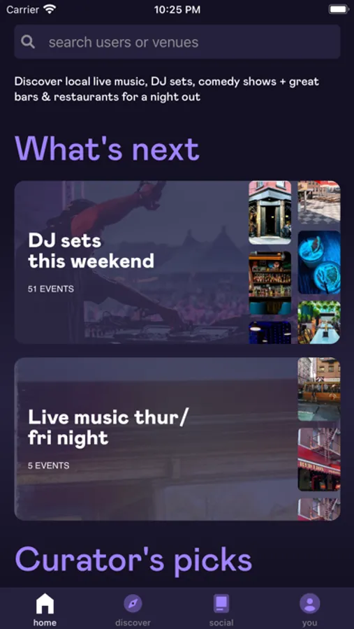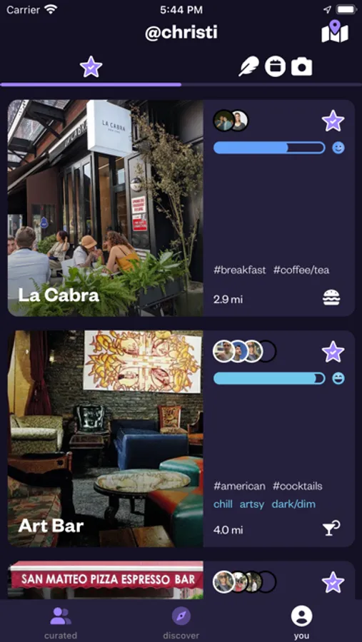 Nothing defines a community like its authentic events. Our community of curators are tapped into "the local scene" and feed the platform with happenings going on all around you. Live music, local DJs, fundraisers, bar trivia nights, sporting events and more are now at your finger tips.