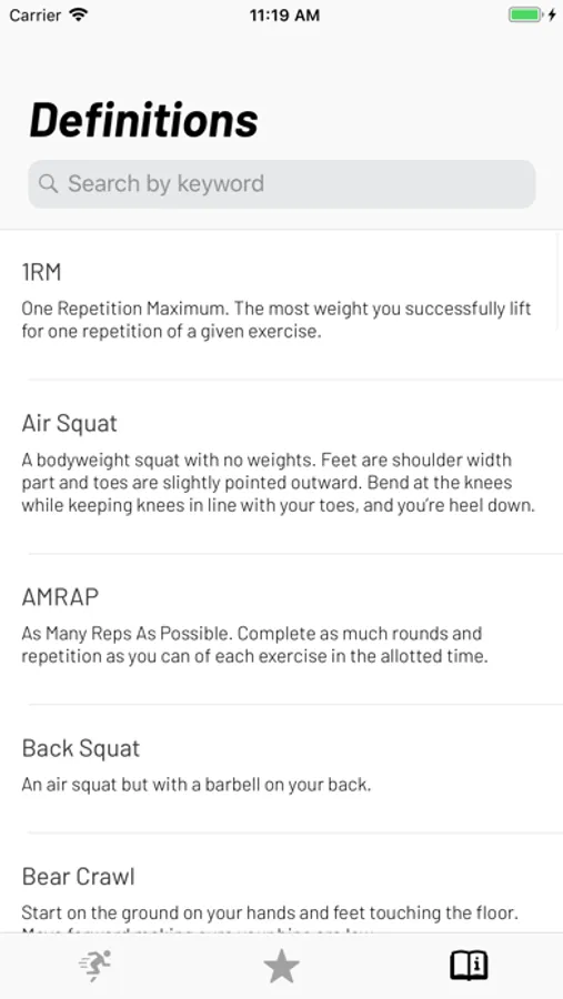 Save workouts by favoriting them and come back to them later by searching through all your bookmarked workouts.