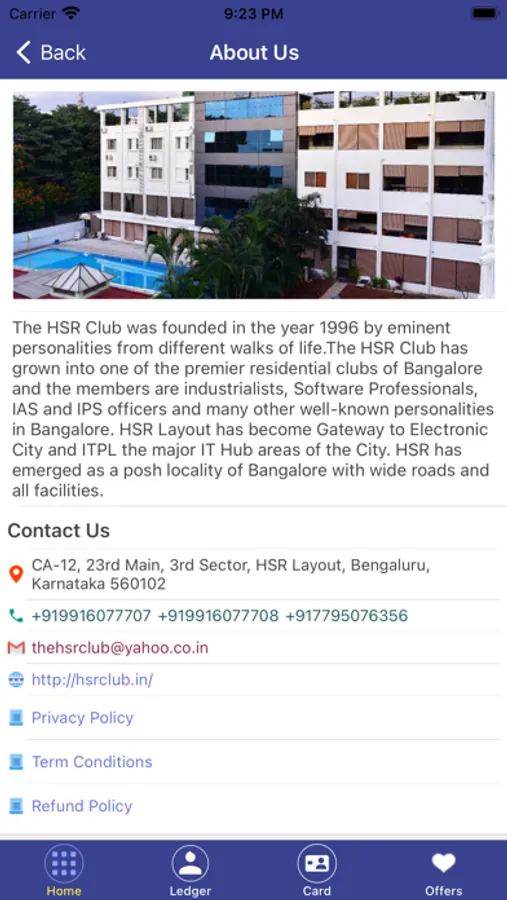 The HSR Club was founded in the year 1996 by eminent personalities from different walks of life.The HSR Club has grown into one of the premier residential clubs of Bangalore and the members are industrialists, Software Professionals, IAS and IPS officers and many other well-known personalities in Bangalore. HSR Layout has become Gateway to Electronic City and ITPL the major IT Hub areas of the City. HSR has emerged as a posh locality of Bangalore with wide roads and all facilities.