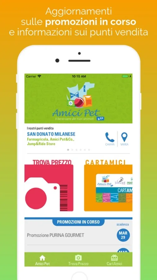 • essere sempre aggiornato sulle promozioni in corso negli store Amici Pet & Co.;